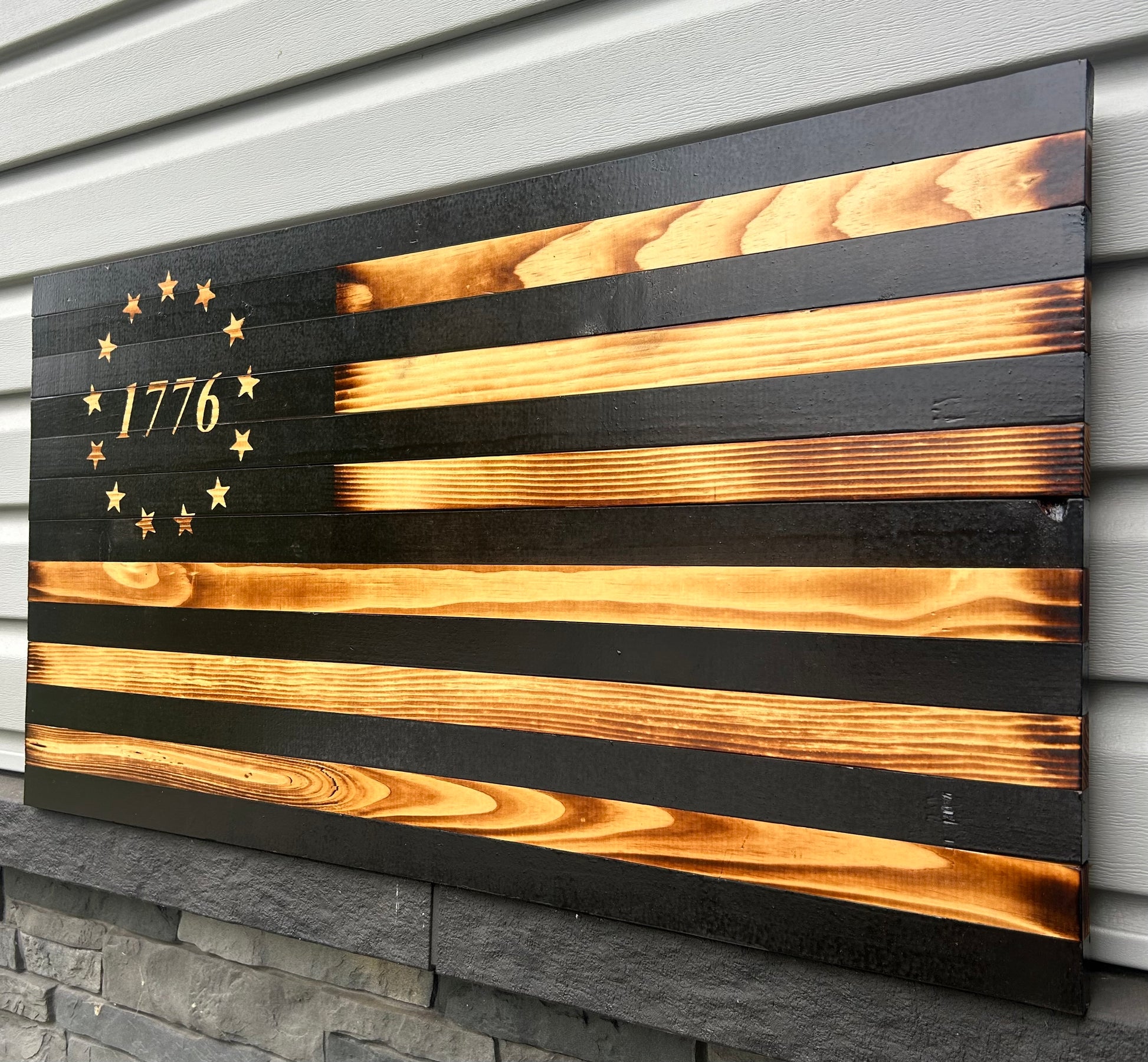 A striking blend of black and wood, proudly commemorating the year our freedom was born — 1776.